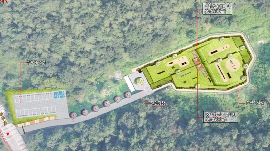 250마리를 수용할 수 있는 이 놀이터는 대형견과 중소형견 놀이터를 구분해 조성하고 동물전용 놀이시설, 격리장 등을 만든다.