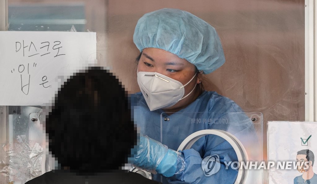 | ▲ A medical worker carries out COVID-19 tests at a makeshift clinic located in central Seoul on May 14, 2021. (Yonhap) |