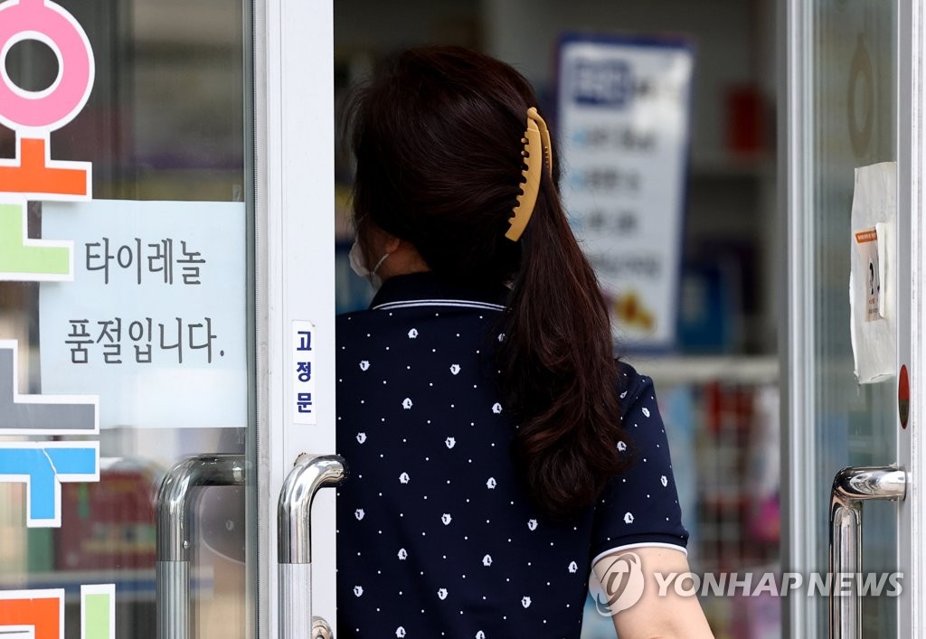 | ▲ This photo taken on June 21, 2021, shows a Seoul pharmacy that ran out of Tylenol as people rush to buy the painkiller for potential side effects of coronavirus vaccine shots amid the nationwide vaccination campaign. (Yonhap) |