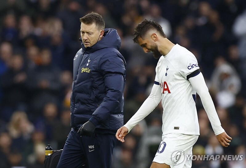 | ▲ 애스턴 빌라와의 경기에서 부상으로 그라운드 떠나는 벤탕쿠르 [로이터=연합뉴스] |