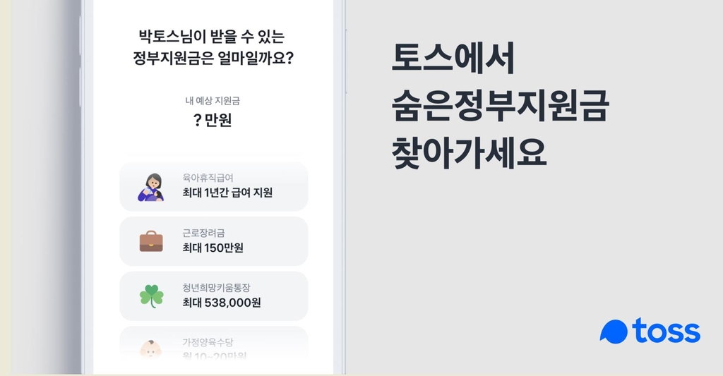 "토스에서 '숨은 정부지원금' 찾아가세요"