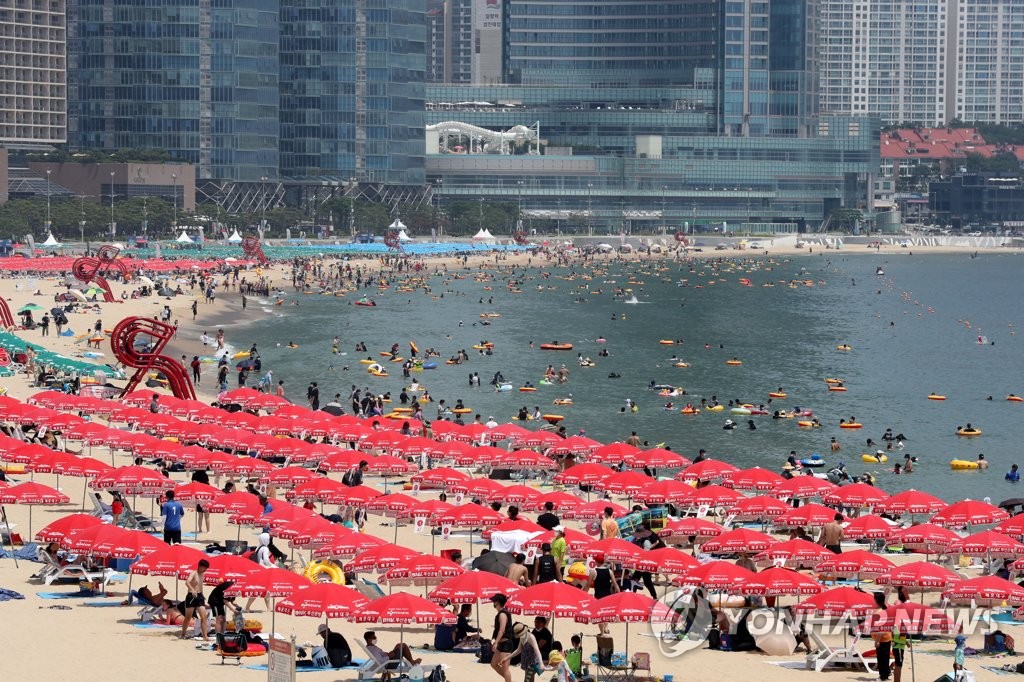 | ▲ Haeundae Beach in Busan, 453 kilometers south of Seoul, is crowded with summer vacationers on Aug. 1, 2021. (Yonhap) |