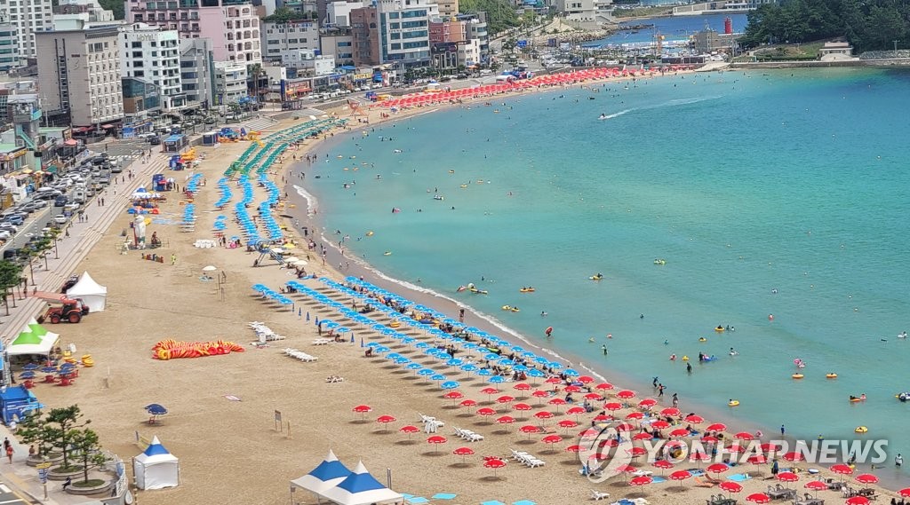 | ▲ This photo taken July 31, 2021, shows Songjeong Beach in Haeundae, Busan, with a small number of people enjoying summer holidays amid a surge in COVID-19 cases. (Yonhap) |