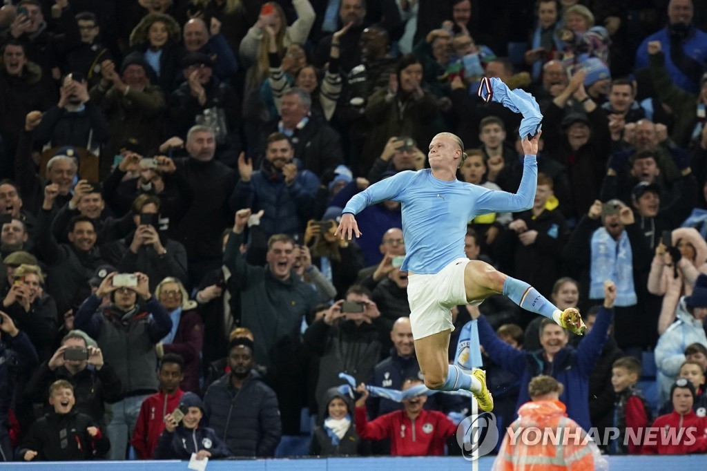(서울=연합뉴스) 김동찬 기자 = 10명이 뛴 맨체스터시티(맨시티)가 후반 추가 시간에 터진 엘링 홀란(노르웨이)의 'PK 극장골'을 앞세워 풀럼을 물리쳤다.