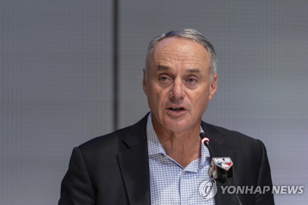 | ▲ 마이너리그 선수 노조에 대한 입장을 밝히는 롭 맨프레드 MLB 커미셔너 [AP=연합뉴스] |
