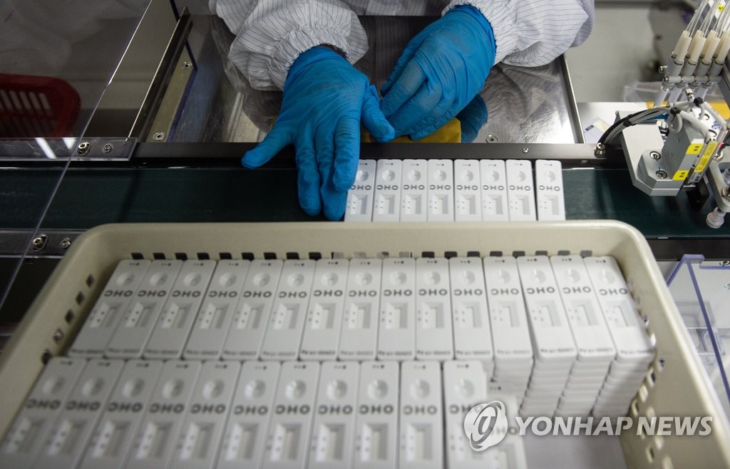 | ▲ A worker packages COVID-19 self-test kits at Osang Healthcare in Anyang, 23 kilometers south of Seoul, on Feb. 23, 2022. (Pool photo) (Yonhap) |