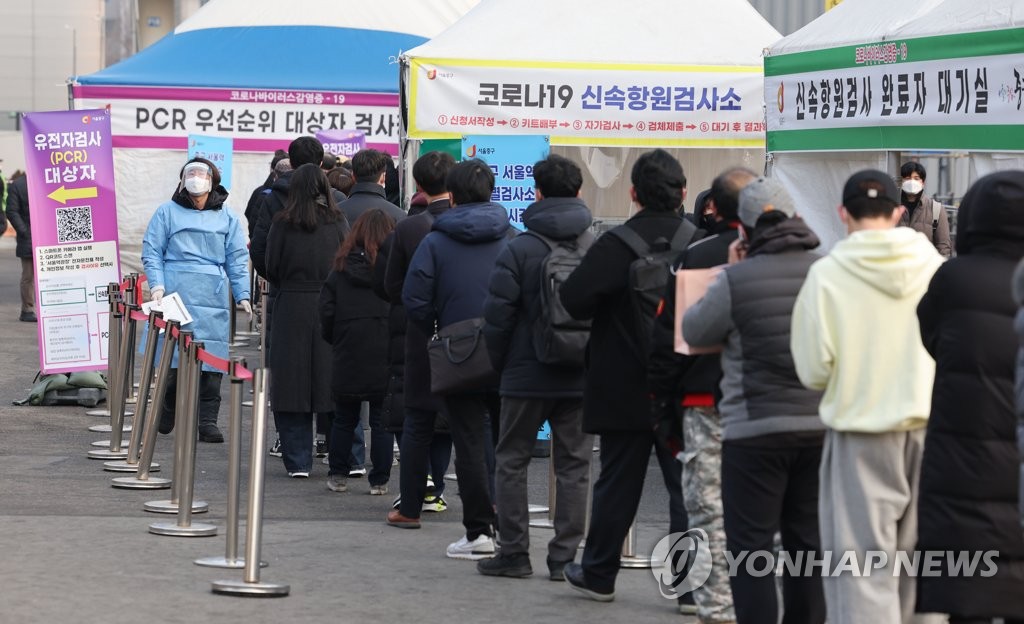 | ▲ Citizens wait in line to receive COVID-19 tests at a temporary testing site in front of Seoul Station in the capital on Feb. 25, 2022. (Yonhap) |