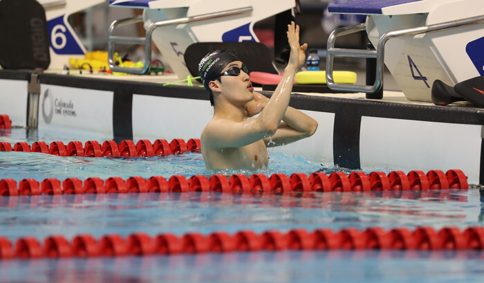 South Korean swimmer Hwang Sun-woo trains at the National Training Center in Jincheon, some 90 kilometers south of Seoul, on June 14, 2022, ahead of the world championships in Budapest, Hungary, that will run from June 18 through July 3. (Yonhap)