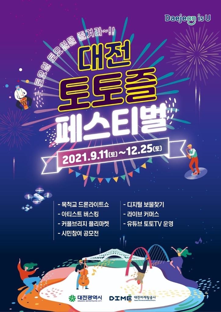 대전시는 11일부터 12월 25일까지 매주 토요일 중앙시장과 대전천변 등지에서 '토토즐 페스티벌'을 연다고 10일 밝혔다.