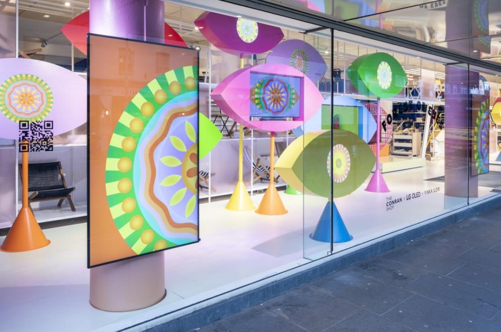 LG전자는 런던 소재 더 콘란 숍 2개 매장에 올레드 에보 총 25대를 설치했다. 각 매장 쇼윈도에 설치된 올레드 에보는 주목받는 아티스트 잉카 일로리의 디지털아트를 생생히 보여준다.