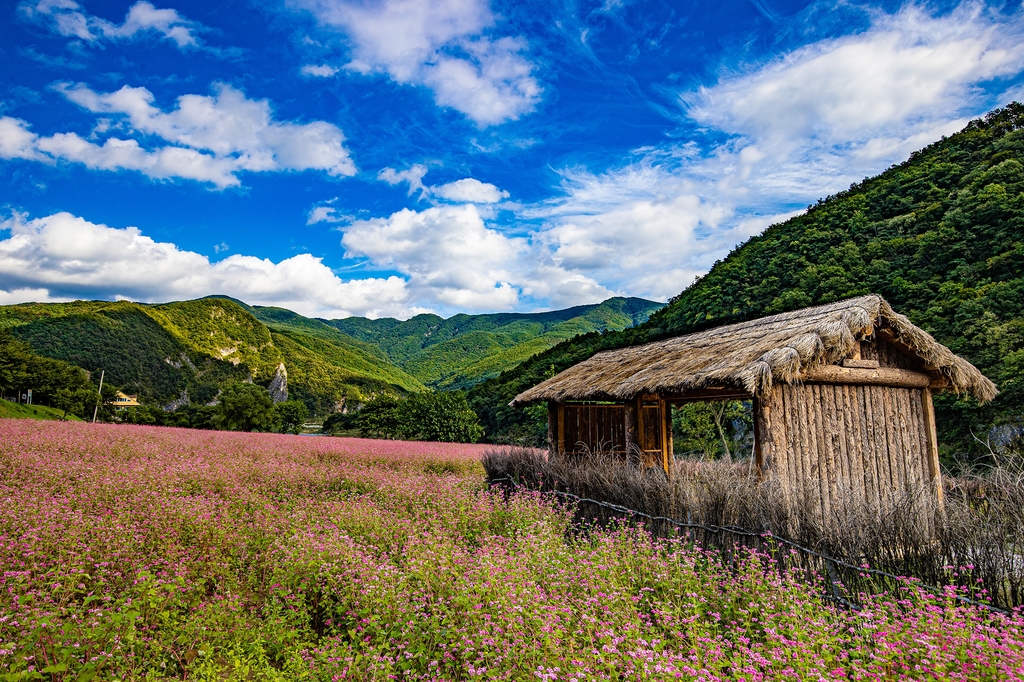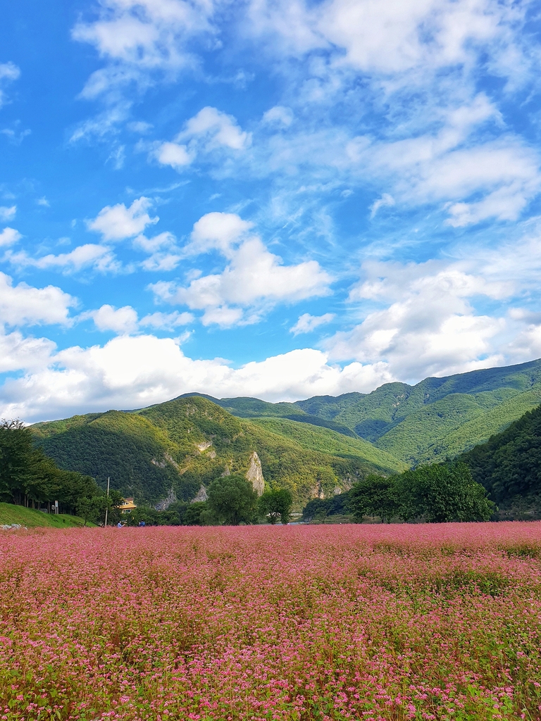 붉은 메밀·맑은 동강·파란 하늘…가을 정취 만끽