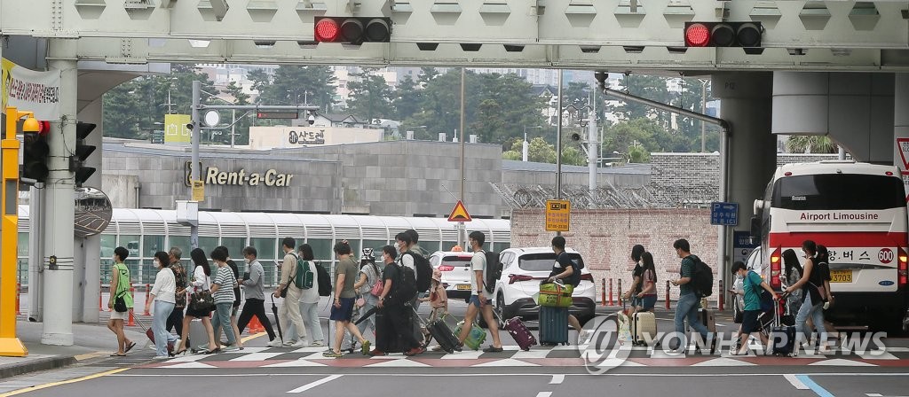 | ▲ 제주 방역 '긴장' (제주=연합뉴스) 제주국제공항에 도착한 관광객들이 마스크를 쓰고 렌터카 주차장으로 향하고 있다. [연합뉴스 자료사진] |