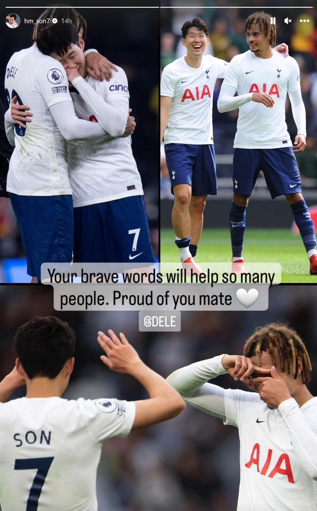 손흥민은 인스타그램 계정을 통해 "너의 용기 있는 말이 많은 사람들에게 도움을 줄 것"이라며 "네가 자랑스럽다"라는 메시지를 남겼다.