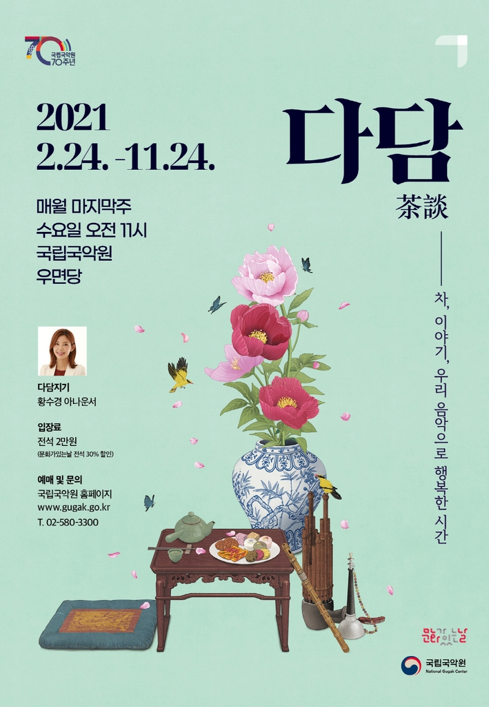 ▲ 국악 브런치 콘서트 '다담' = 국립국악원은 차, 이야기, 우리 음악으로 구성한 브런치 콘서트 '다담'(茶談) 올해 마지막 공연을 오는 24일 오전 11시 서울 서초구 국립국악원 우면당에서 진행한다.