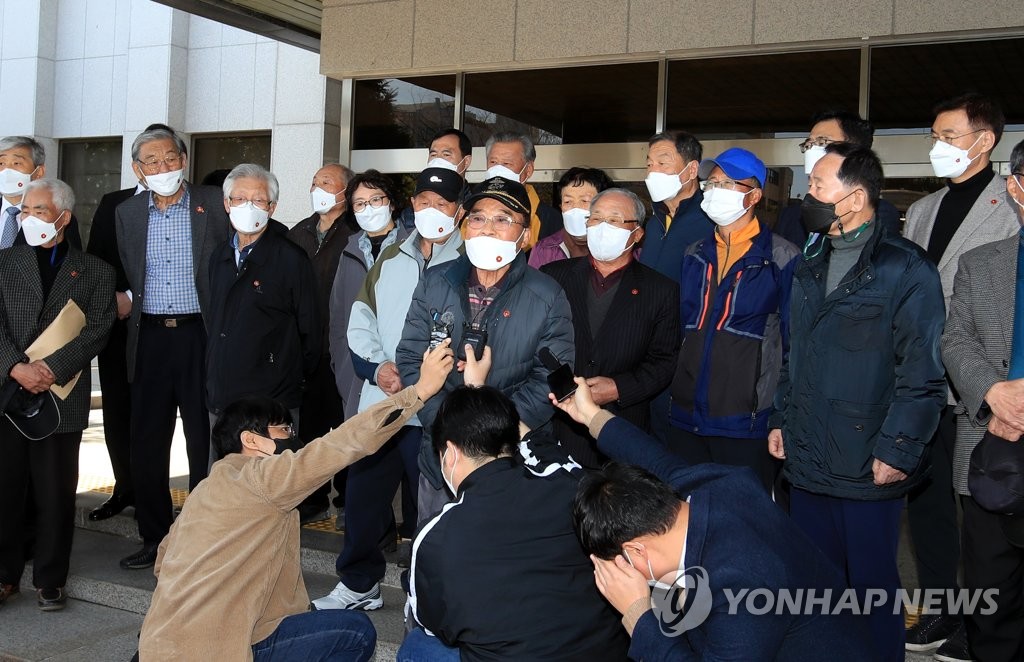| ▲ 4·3 특별재심 무죄 후 기자회견 (제주=연합뉴스) 29일 오후 제주지법 앞에서 4·3 당시 억울한 옥살이를 했던 4·3 생존희생자 고태명(90)씨가 특별재심을 통해 무죄를 선고받은 뒤 소감을 밝히고 있다. 2022.3.29 [제주도사진기자회] atoz@yna.co.kr |