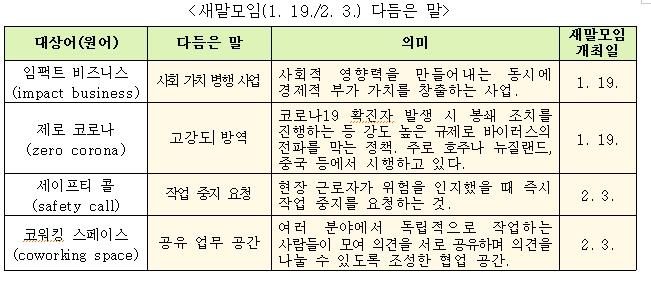 문체부와 국립국어원은 국민이 정보에서 소외되지 않도록 어려운 용어를 쉬운 말로 다듬고 있다. 선정된 말 외에도 일반 국민이 이해하기 쉬운 다른 우리말 대체어가 있다면 사용할 수 있다고 밝혔다.