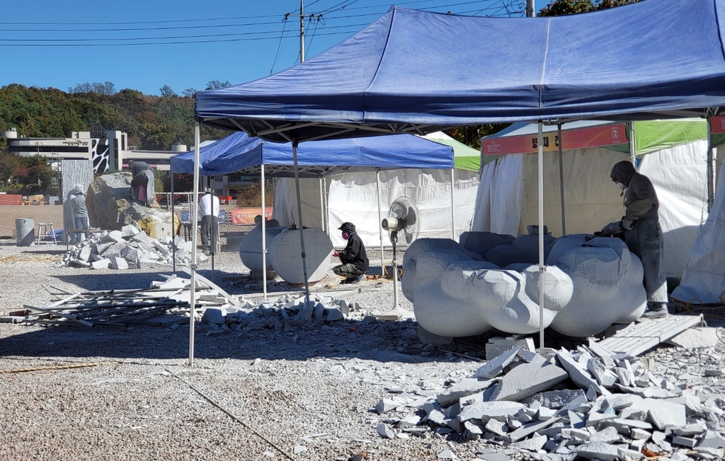 | ▲ 춘천조각심포지엄 작품 제작 한창. [촬영 이상학] |
