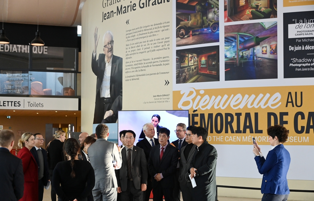 | ▲ 노르망디 캉 기념관에서 설명 듣는 인천시 방문단 [인천시 제공] |