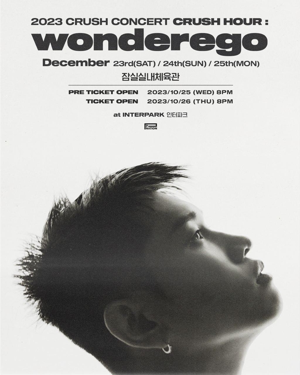 크러쉬는 이번 콘서트에서 기존 히트곡과 다음 달 발표할 정규 3집 '원더이고'(wonderego) 수록 신곡 등 다채로운 노래를 들려줄 예정이다.