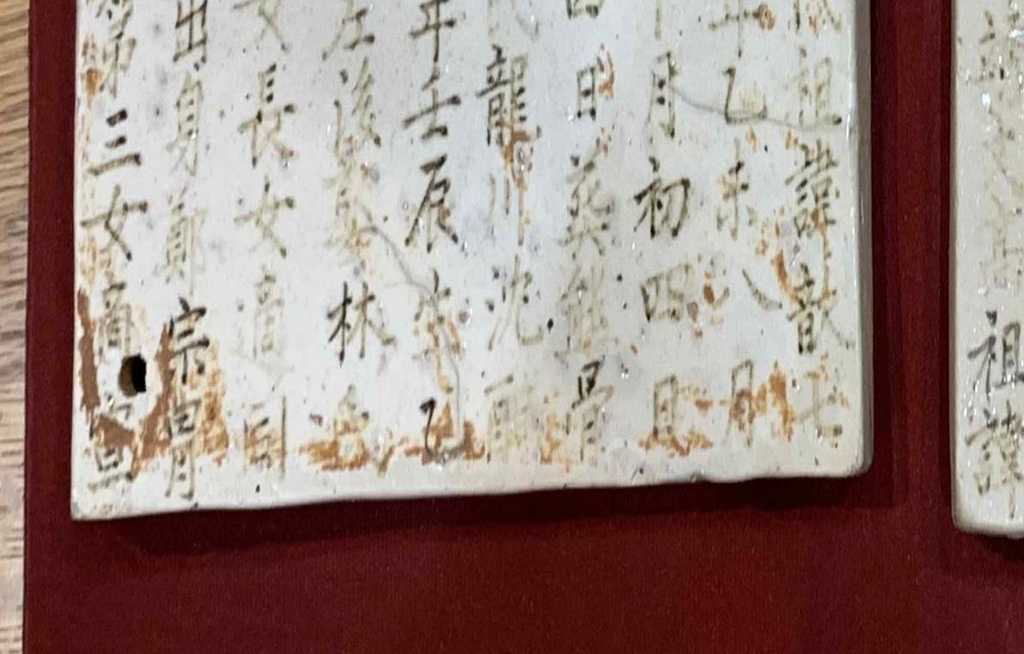 희고 부드러운 백토로 만든 판 위에 청화 안료를 사용해 정자로 바르게 쓰인 묘지문이 남아있다.