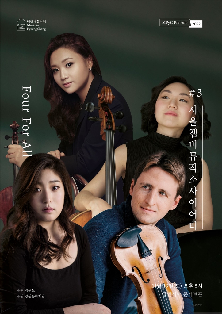 ▲ 대관령음악제 연중기획시리즈 '포 포 올'(Four For All) = 대관령음악제의 연중기획시리즈인 서울챔버뮤직소사이어티의 '포 포 올'(Four For All) 공연이 오는 19일 강원도 평창 알펜시아 콘서트홀에서 열린다.