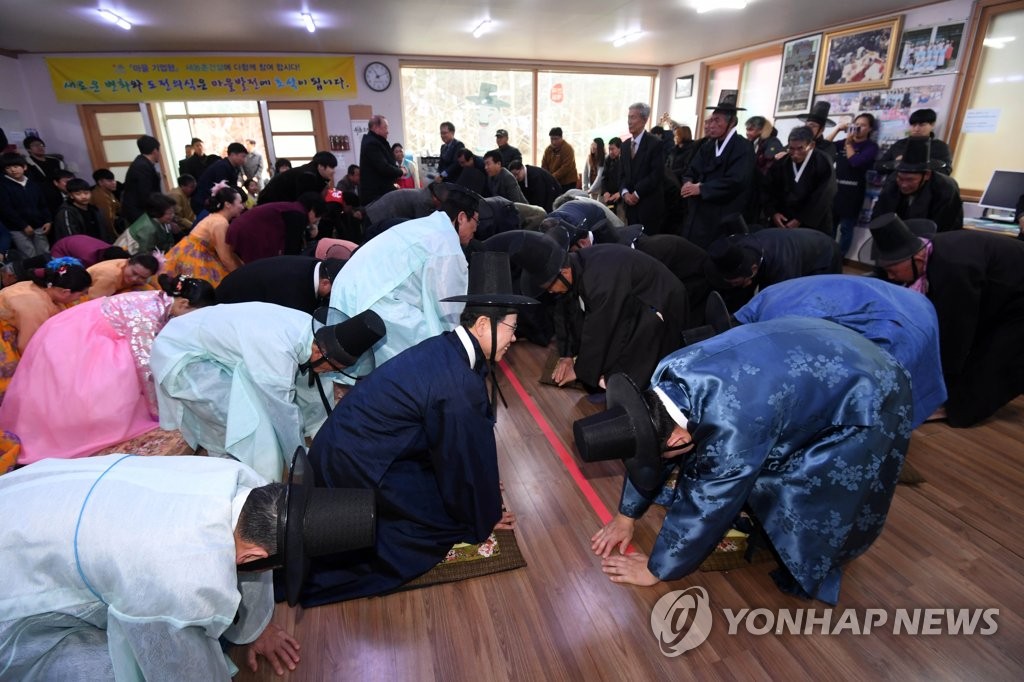이날 행사는 주민들이 최종춘(96) 촌장을 비롯한 마을 어른께 합동 세배를 올리고, 주민들끼리 서로 맞세배를 한 뒤 민속놀이 등 부대행사가 이어진다.