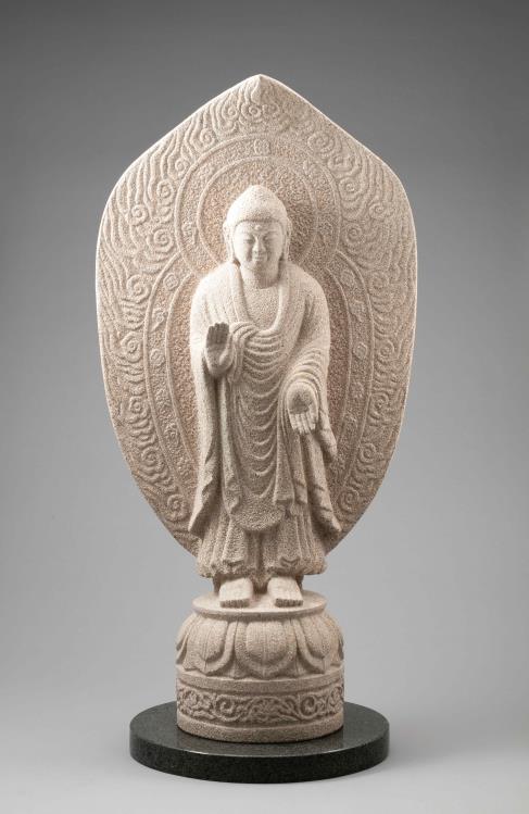 불상은 성스러움을 드러내기 위해 머리나 등 뒤에 광명을 표현한 광배(光背)가 유연하게 표현돼 있고, 덩굴무늬가 새겨진 좌대(座臺·기물을 받쳐서 얹어 놓는 대를 뜻함)가 돋보이는 작품이다.