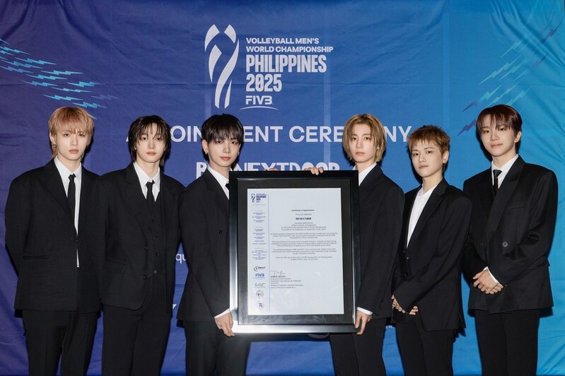 국제배구연맹은 전날 서울 용산구 하이브 본사를 찾아 보이넥스트도어 멤버들을 위촉했다. 보이넥스트도어는 이후 대회 사전 홍보 활동에 나서고, 개막식에도 참석해 피날레 무대를 꾸민다.