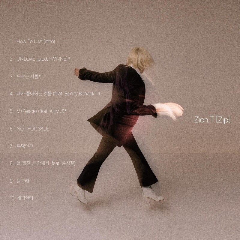 | ▲ This image provided by The Black Label shows the track list of K-pop singer-songwriter and producer Zion.T's third studio album, "Zip." (PHOTO NOT FOR SALE) (Yonhap) |