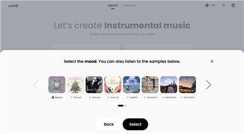 15일 기자가 체험한 AI 음악 창작 플랫폼 '라이브'(LAIVE)는 작곡의 '작'자도 모르는 일반인도 원하는 배경음악을 만들 수 있게 했다.