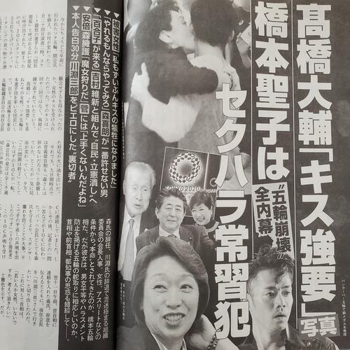 | ▲ (도쿄=연합뉴스) 주간지 '슈칸분슌'(週刊文春)에는 하시모토 세이코(橋本聖子) 도쿄올림픽·패럴림픽 담당상이 성희롱 상습범이라는 기사가 실렸다. [슈칸분슌 2월 25일호 촬영 화면, 재판매 및 DB 금지] |