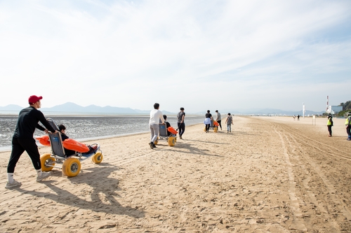이번 시범 프로젝트는 수상 휠체어를 타고 안전 요원과 함께 바다에 들어가고, 휠체어 리프트 버스와 전동 휠체어 등을 이용해 배리어 프리 관광지를 방문하는 방식으로 지난 8월부터 11월까지 진행됐다.