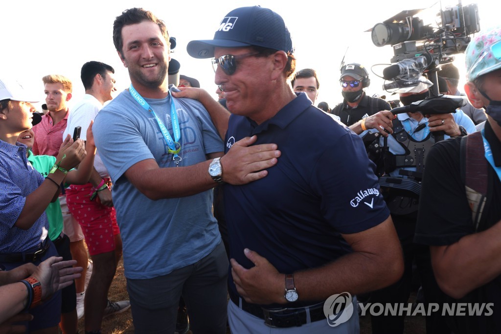 | ▲ 5월 PGA 챔피언십 우승 당시의 미컬슨(오른쪽)과 람. [AFP=연합뉴스] |