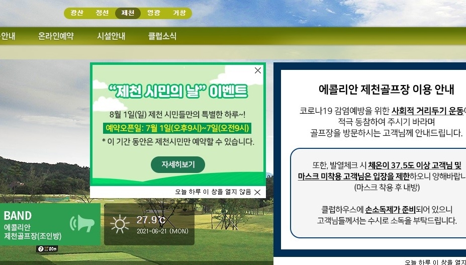 | ▲ 에콜리안 골프장 홈페이지 [제천시 제공. 재판매 및 DB 금지] |