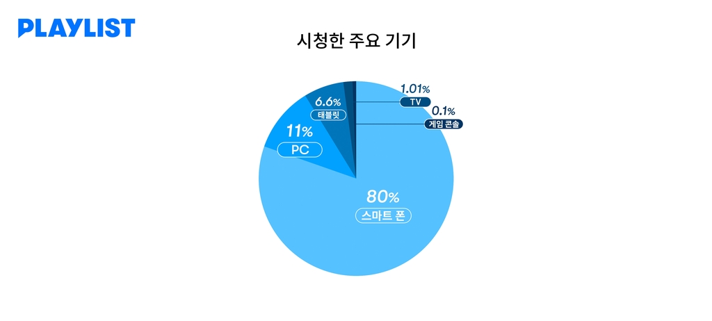 작품별 시청자 비중을 살펴보면 8개 작품 모두 18~24세 시청자 비중이 43%로 가장 많았고, 시청자 유입 경로는 유튜브가 57.9%로 가장 많았다. 또 플레이리스트 작품을 시청한 주요 기기는 스마트폰이 80%로 압도적이었다.