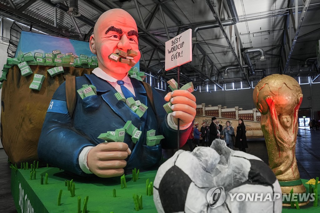 | ▲ 돈 먹는 인판티노 [AP=연합뉴스] 독일의 로즈 먼데이 퍼레이드 축제에 사용될 FIFA를 비판하는 조형물 |