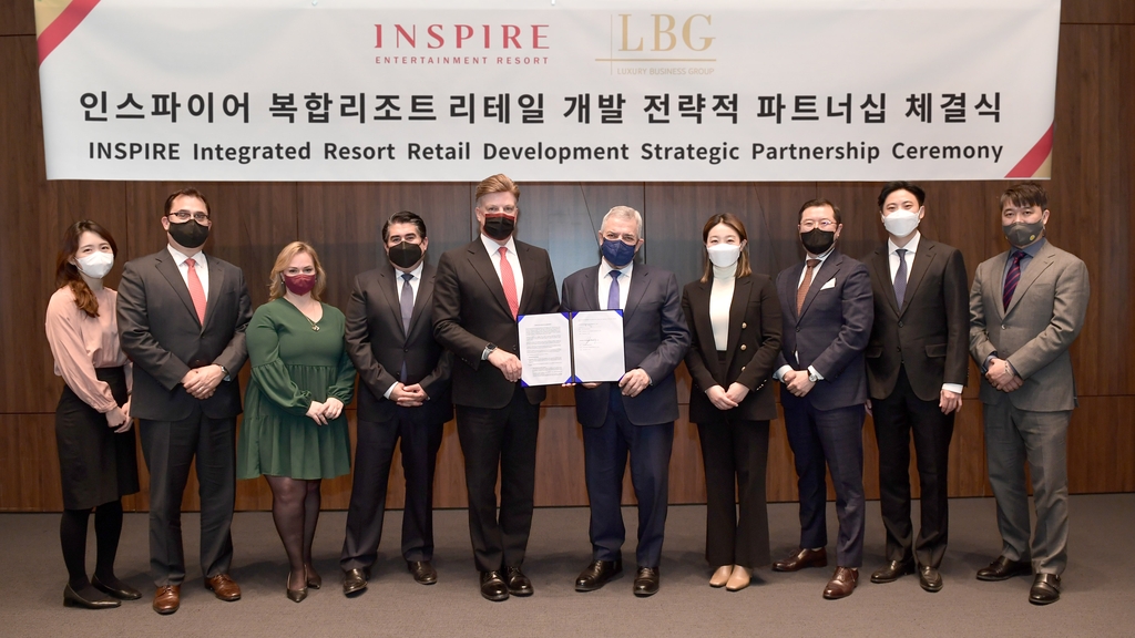 (인천=연합뉴스) 신민재 기자 = 인천 영종국제도시 내에 복합 리조트를 개발 중인 인스파이어 엔터테인먼트 리조트는 럭셔리 비즈니스 그룹과 리테일 서비스 부문 업무협약을 맺었다고 9일 밝혔다.