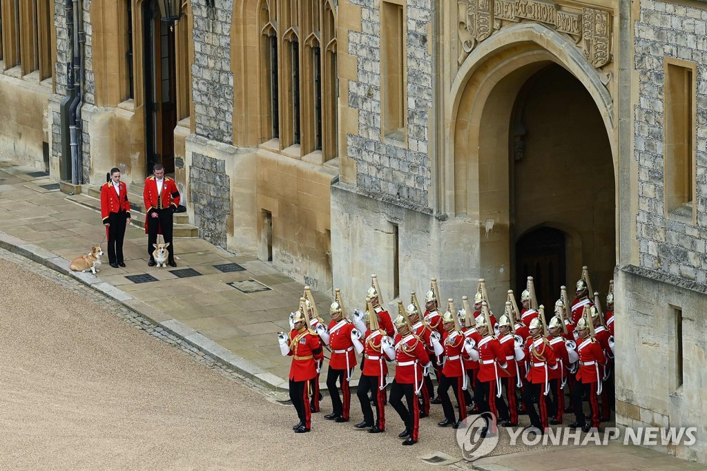 (서울=연합뉴스) 김동호 기자 = 고(故) 엘리자베스 2세 여왕의 '마지막 여정'을 그의 반려견이었던 웰시 코기 두마리가 지켜봤다고 로이터 통신과 일간 워싱턴포스트(WP) 등 외신이 19일(현지시간) 보도했다.
