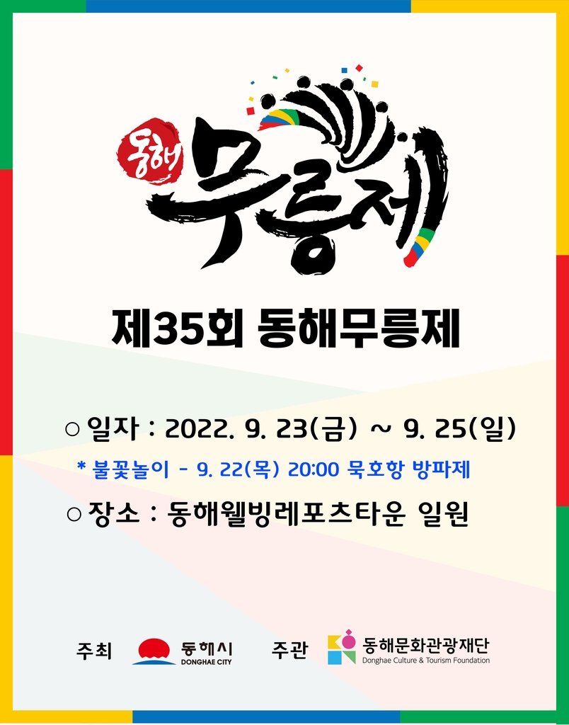 특히 23∼25일 동해 웰빙레포츠타운 일원에서는 동해시 대표 축제인 '동해 무릉제'가 3년 만에 개최, 행사장을 찾은 시민과 관광객의 눈과 귀를 즐겁게 할 예정이다.