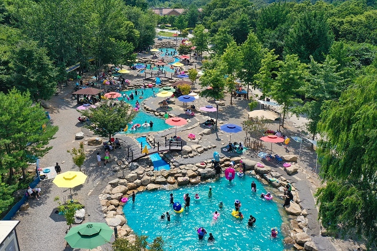 야외 풀장 5곳과 매점, 화장실, 탈의실, 포토존 등 부대시설을 비롯해 물놀이 안전관리소 등을 갖추었다.