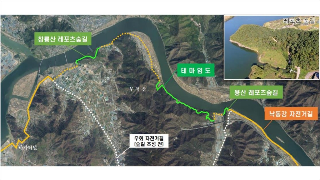 이 구간은 산지여서 강을 따라 난 낙동강 종주 자전거길이 없는 구간이었다.