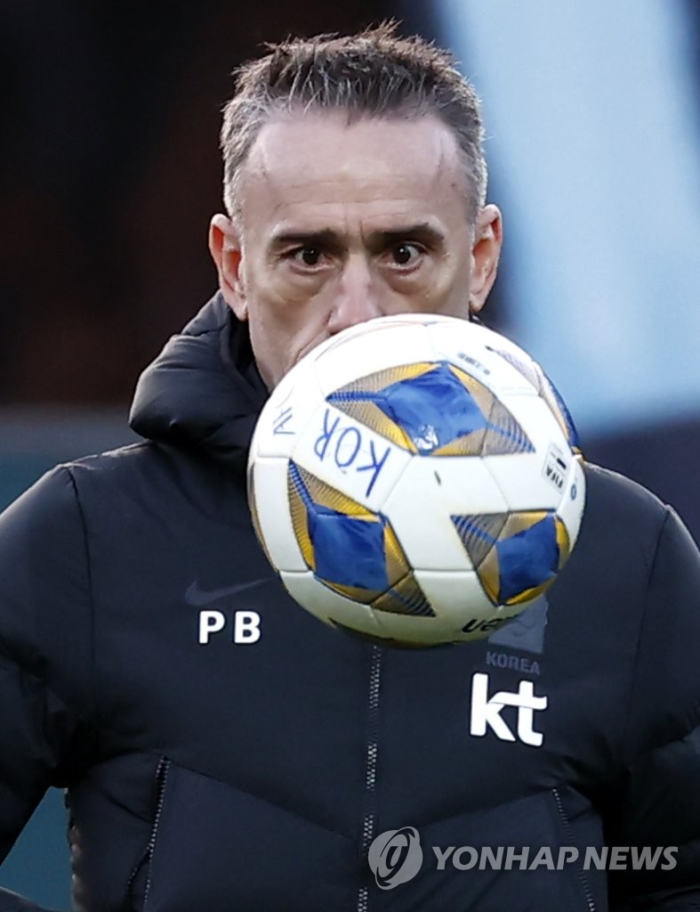 | ▲ 볼 트래핑하는 벤투 감독 (파주=연합뉴스) 윤동진 기자 = 파울루 벤투 한국 축구대표팀 감독이2022 FIFA 카타르 월드컵 아시아 최종예선을 앞두고 8일 경기 파주트레이닝센터(NFC)에서 열린 소집훈련에서 볼 트래핑을 하고 있다. 2021.11.8 mon@yna.co.kr |