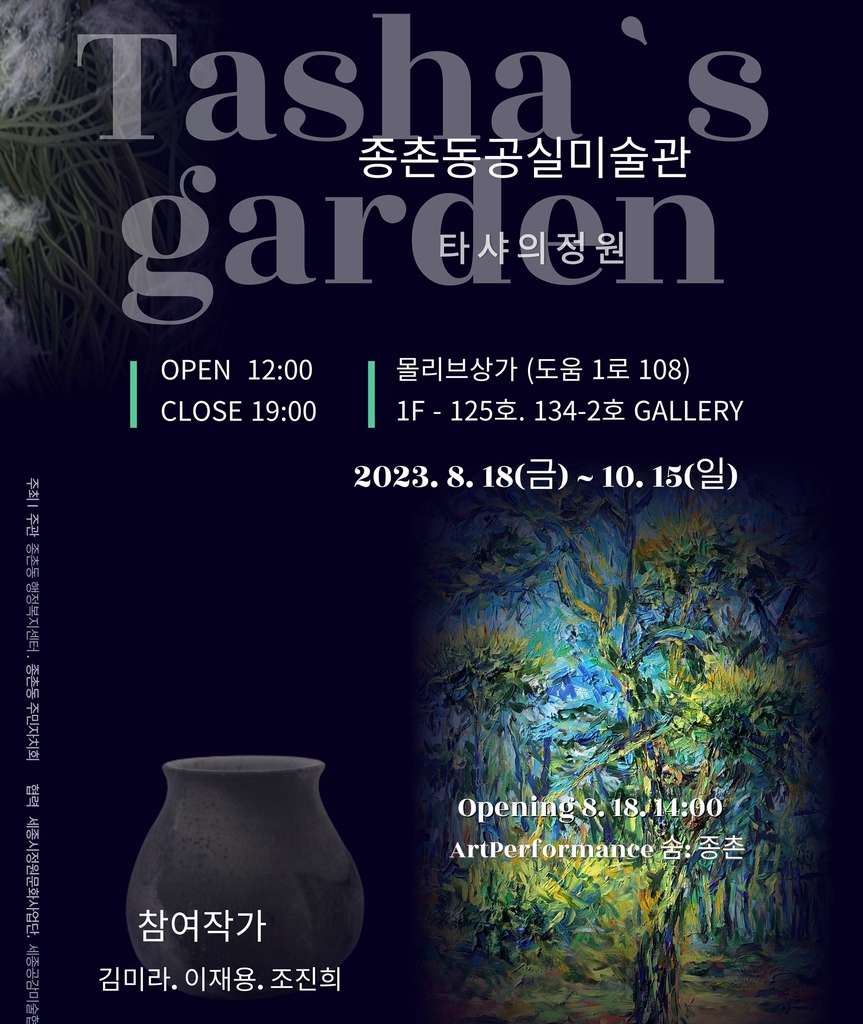 세종시 종촌동은 2023년 마을계획사업의 하나로 오는 18일부터 10월 15일까지 비어 있는 몰리브 상가 1층 2곳에서 미술작품 전시회 '타샤의 정원'을 개최한다고 17일 밝혔다.