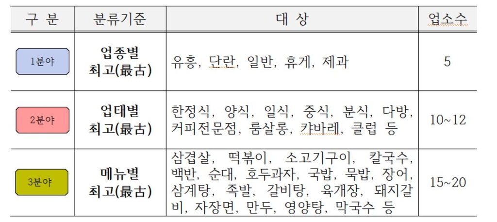 선정 기준은 '1945년 해방 이후 우리 시 음식점'이며 업종별(5개), 업태별(10∼12개), 메뉴별(15∼20개)로 나눠 각 분야 시초 업소를 선정할 계획이다.