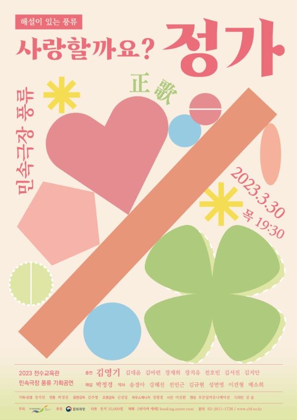 공연에서는 국가무형문화재 가곡 보유자인 김영기 명창이 출연해 정가를 쉽게 소개하고, 관객들과 함께 직접 정가를 부른다. 젊은 가객들도 무대에 함께 참여할 예정이다.