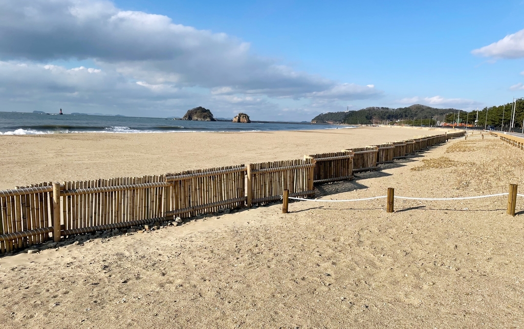 대산지방해양수산청은 2016년 3월부터 국비 234억원을 들여 해변에 모래 27만㎥를 쌓아 해안사구를 조성하고 모래가 흘러나가는 것을 막을 나무발 850m를 설치했다.