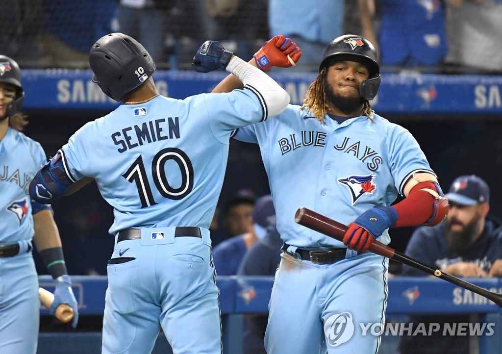 | ▲ 블라디미르 게레로 주니어와 마커스 시미언 [USA투데이/로이터=연합뉴스] |