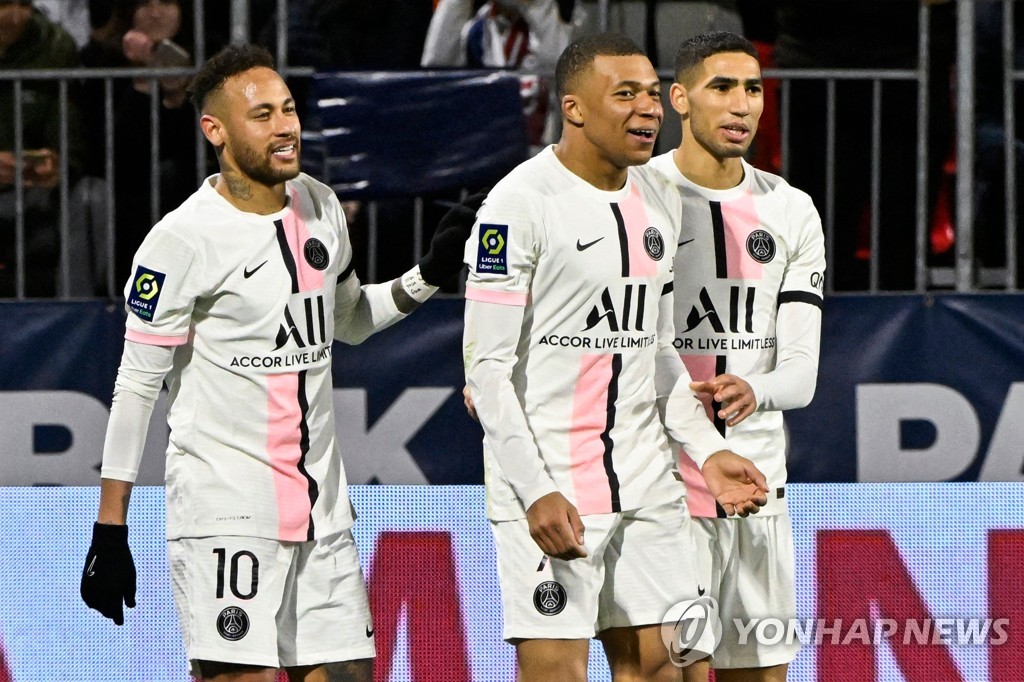 (서울=연합뉴스) 김동찬 기자 = 네이마르(브라질)와 킬리안 음바페(프랑스)가 나란히 해트트릭을 달성한 파리 생제르맹(PSG)이 두 경기 연속 대승을 거뒀다.