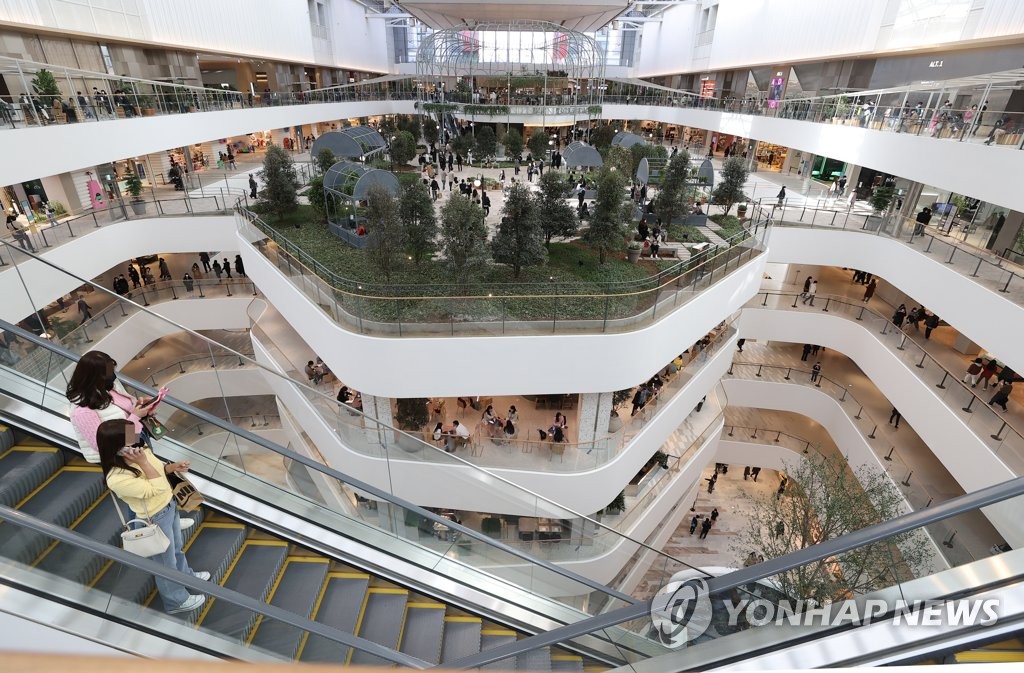 | ▲ Two shoppers (L) stand on an escalator in a department store in Seoul that was included on the list of facilities to be closely monitored till the end of the month on March 16, 2021. (Yonhap) |