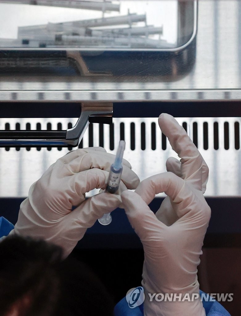 | ▲ A medical worker splits up doses of a coronavirus vaccine in a vial at a COVID-19 vaccination center in Seoul on Sept. 23, 2021. (Yonhap) |